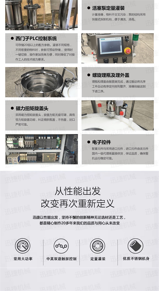 6、采用磁力扭矩旋盖头,旋盖力矩无级可调,具有恒力矩旋盖功能,纠正倾斜瓶盖,不伤盖,封口严密可靠;