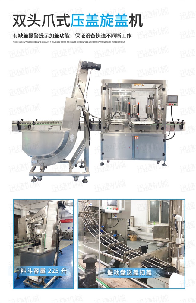 该枇杷膏灌装机生产线-上盖机结合用户使用的情况,摒弃了传统转盘式真空旋盖机的弊端,研制开发的新型设备,设备自动检测到设定数量的瓶子、盖子进入到真空旋盖机内,旋盖机彩色显示屏会实时显现旋盖状况,整机多点检测,当进口无瓶无盖、出口堵塞、定位不准、瓶身倾倒均自动停机。单个旋盖头达到的真空度都可以单独显示,单独调整。合格率达到100%!