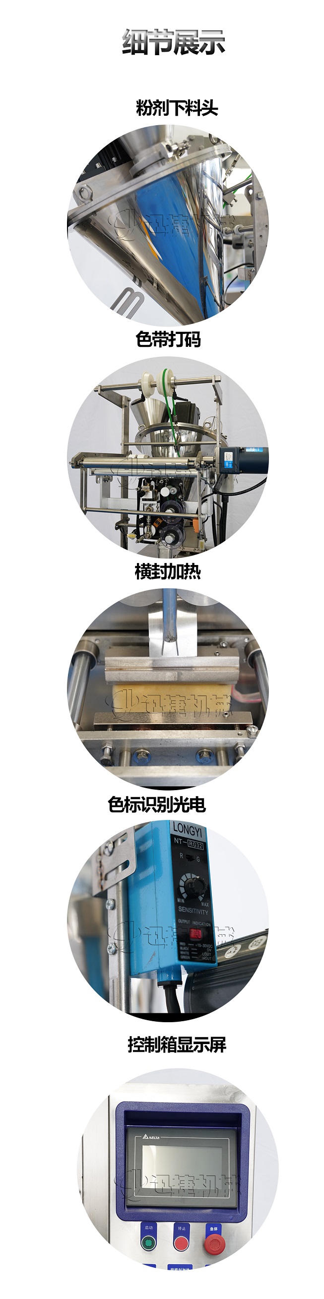 粉剂包装机,可完成三边封、四边封、背封、异形状袋形,可对粉末状状物料进行定量包装。