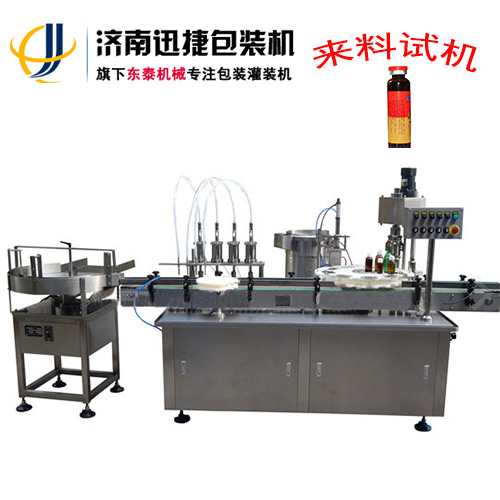 全自动口服液灌装压塞机为小剂量灌装设备。适用于医药行业口服液等小剂量药品的灌装,在引进国外技术的基础上,由公司自主研发的,采用进口的凸轮分度工位器,精度高,质量好,结构紧凑,运行平稳,有利于增强使用年限。能自动完成口服液瓶的洗瓶、烘干、灌装和封口等动作,是口服液生产厂家较好的配套设备,完全符合GMP要求。