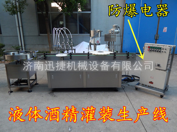 该机是一种由微电脑(PLC)可编程控制,光电传感,气动执行于一体的高新技术灌装设备。全自动防爆酒精灌装机是一款专业的酒精包装机械,其可对各种酒精如电子酒精、无水酒精、香水酒精、食用酒精、玉米酒精等液体易燃产品。广泛适用于酒精、化工、化妆品、日用化工用品、各种粘稠液体等的扁瓶、椭圆瓶类容器包装,是完全符合GMP标准生产规范的较包装设备。