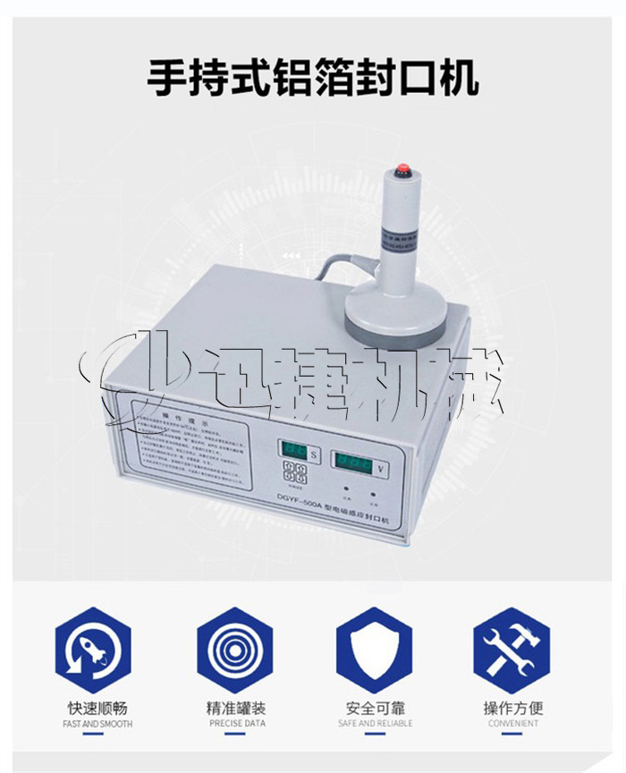 该该封口机为手持式铝箔封口机,是一种便携式电磁感应加热封口设备,专为制药、化工、农药、食品、化妆品、轻工行业对容器进行铝箔严密封口,封口材质使用广泛。