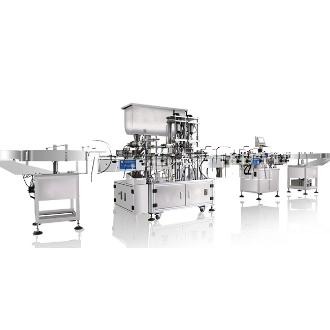 3、 该设备在设计上大大缩短了下料斗到灌装头的灌装距离,克服了含油量大的物料(如:含芝麻粒的辣椒油)在灌装过程中出现的有些瓶油多,有些瓶酱多的灌装误差大的缺点。