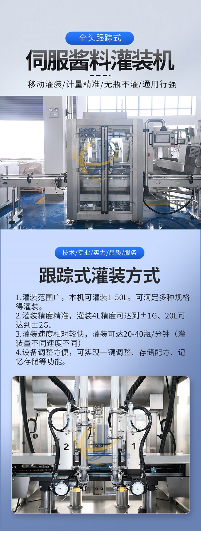 随着现代经济飞速发展,人们的生活品质都大大提高了,现在大家对于调味酱肯定都不陌生了,现在市场上各种各样的调味酱深受人们的喜爱,例如有牛肉酱、香菇酱、甜辣酱、番茄酱等等,调味酱市场竞争激烈,要想吸引人们的购买欲,包装肯定是必不可少的,所以许多商家开始与全自动调味酱灌装机设备生产厂家合作。那么很多客户不知道全自动调味酱灌装机设备哪家好,这里小编推荐济南迅捷,公司多年来一直勇于创新,以市场的需求为最重要的,引进了先进的技术,生产的全自动调味酱灌装机设备不仅在质量,品质上都很棒而且还具备了使用寿命长,操作简单,灌装精准等等一系列优点。全自动调味酱灌装机设备满足了客户的一系列要求给企业带来了很大的利润。