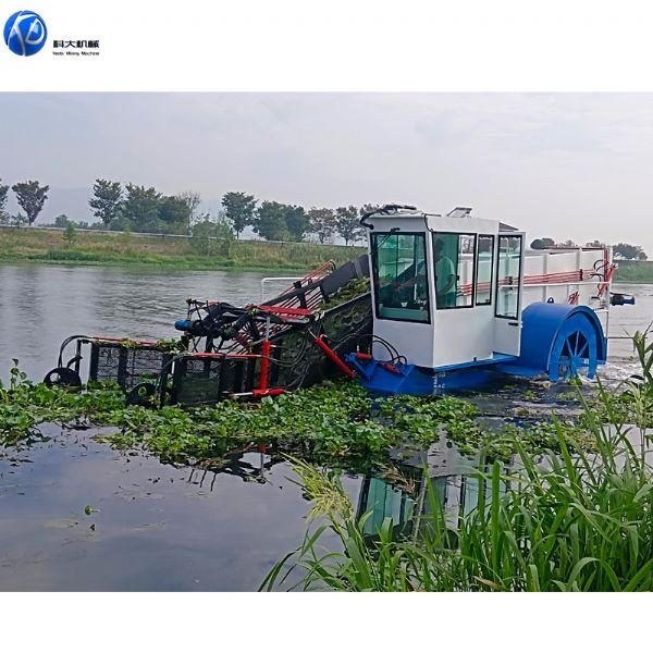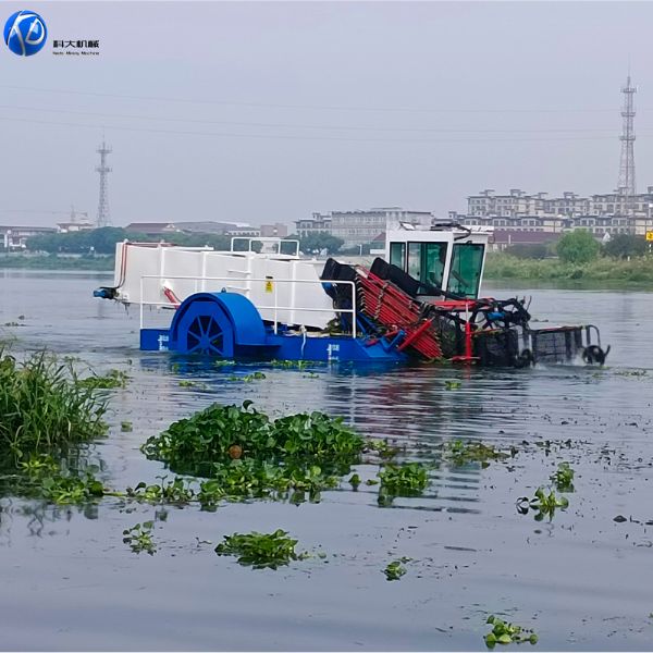 全自動水面保潔船發貨至印尼,全自動水面保潔船也叫作割草船,蘆葦收割船、水葫蘆打撈船,用于收割打撈水面水草、水葫蘆、水面垃圾等