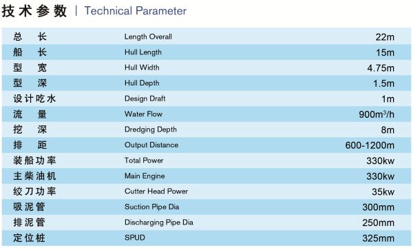 是在疏灘工程中運用較廣泛的一種船舶,它是利用吸水管前端圍繞吸水管裝設旋轉絞頭裝置,將河底泥沙進行切割和攪動,再經吸泥管將絞起的泥沙物料,借助強大的泵力,輸送到泥沙物料堆積場,它的挖泥、運泥、卸泥等工作過程,可以一次連續完成,它是一種效率高、成本較低的挖泥船,是良好的水下挖掘機械。