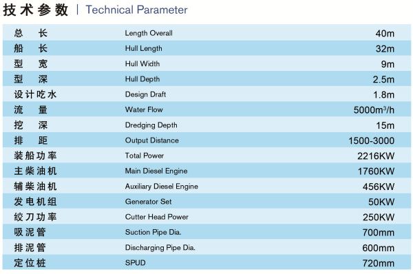是在疏灘工程中運用較廣泛的一種船舶,它是利用吸水管前端圍繞吸水管裝設旋轉絞頭裝置,將河底泥沙進行切割和攪動,再經吸泥管將絞起的泥沙物料,借助強大的泵力,輸送到泥沙物料堆積場,它的挖泥、運泥、卸泥等工作過程,可以一次連續完成,它是一種效率高、成本較低的挖泥船,是良好的水下挖掘機械。